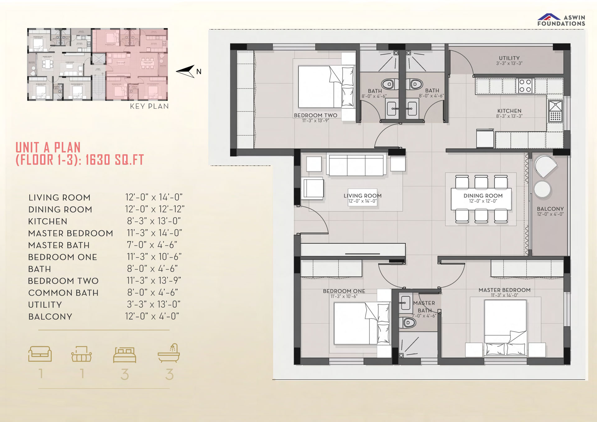 - Bedroom 1 2 light points, 1 Fan point,1 plug point,1A/c point.